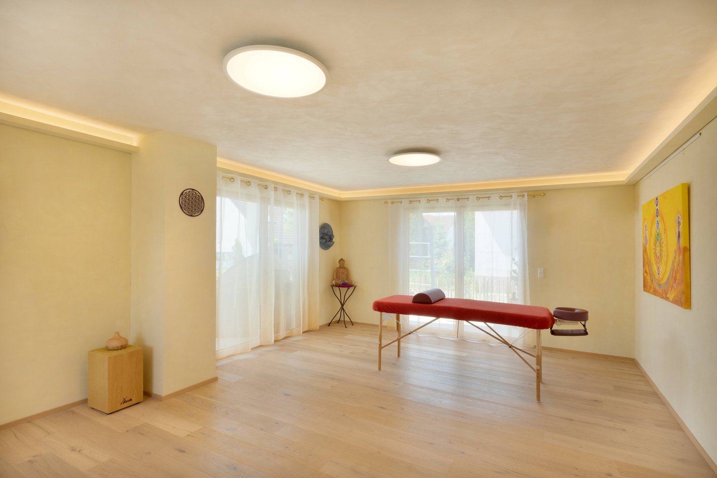 Sanftes Licht durchflutet die Räume und schafft eine Atmosphäre von Geborgenheit und Klarheit zugleich. Natürliche Materialien, warme Farben und liebevoll gewählte Details spiegeln die Haltung wider, die AmRa trägt: Achtsamkeit, Wertschätzung und Tiefe.